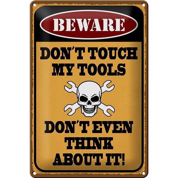 FEMER Tin Sign with Saying 20 x 30 cm Beware Don't Touch My Tools