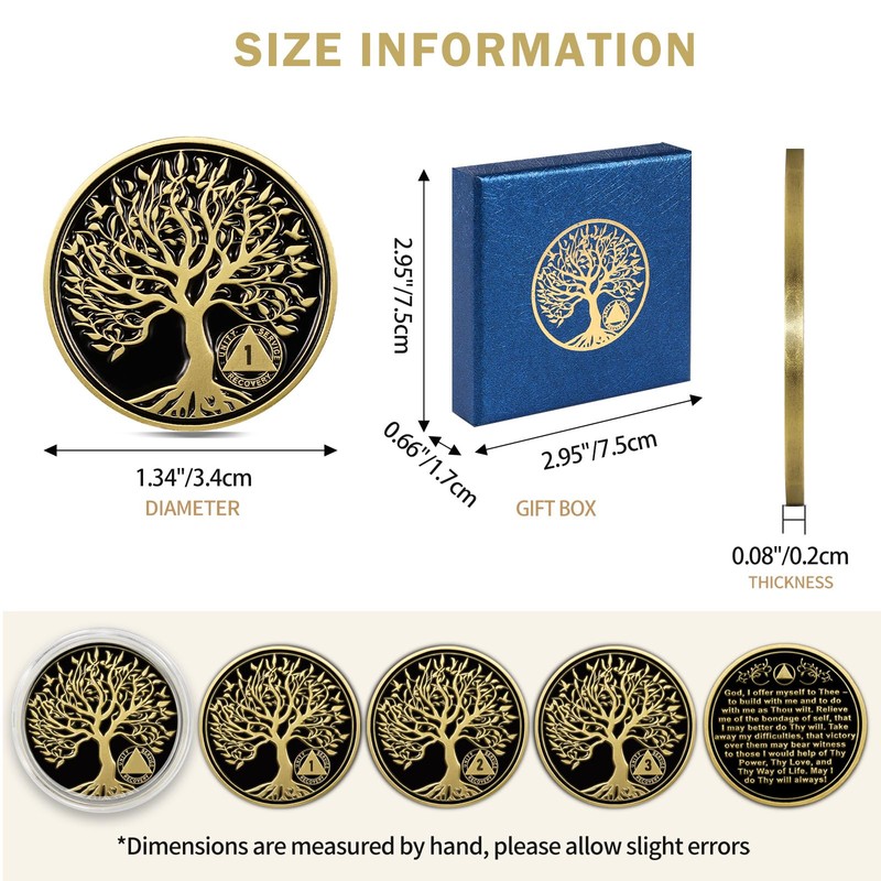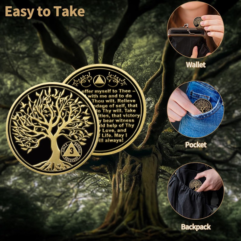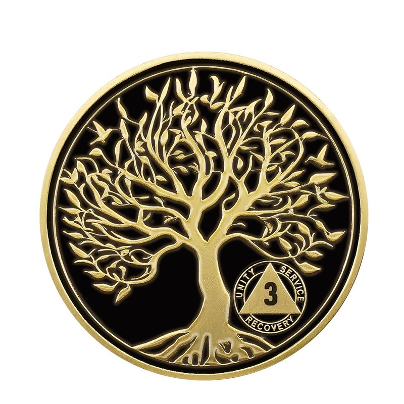 - AA Coins and Medallions: Celebrate a milestone of sobriety with this three year sobriety coin, crafted using advanced 3D technology for a detailed finish. Featuring the symbolic Tree of Life, this AA medallions embodies growth, resilience, and steadfastness—honoring the profound personal transformation and the hopeful path embraced in recovery.