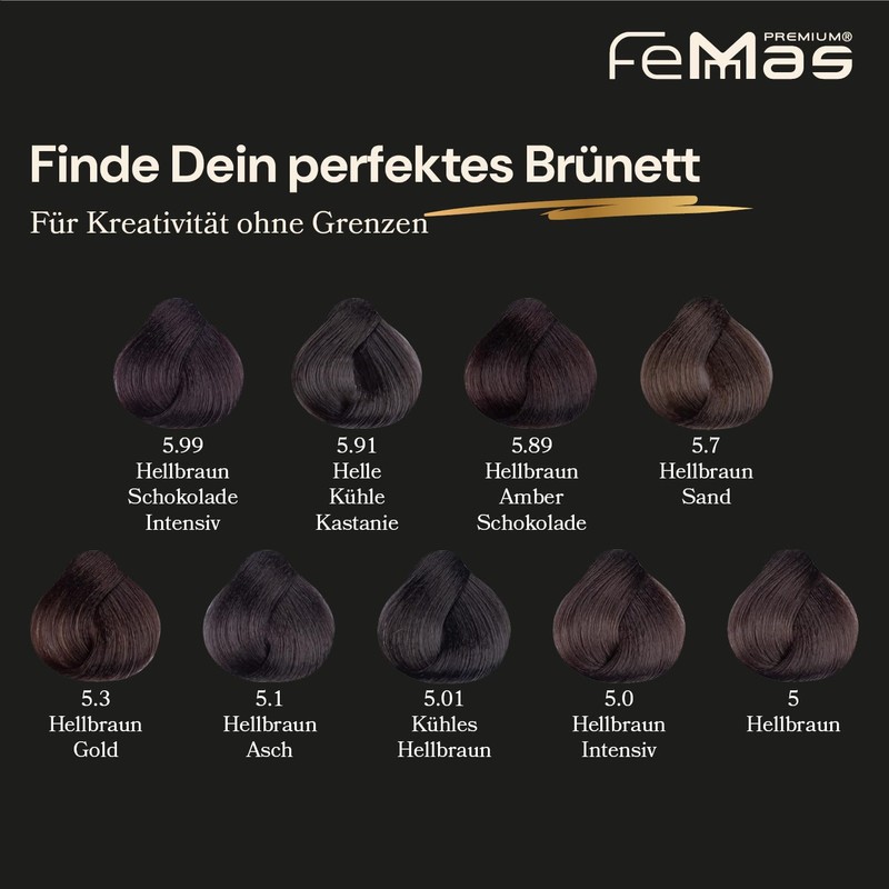 - As individual as you: with the FemMas colouring set with either 1.9%, 3%, 6%, 9% and 12%, you can mix your own individual colour shade and lighten your hair by 1 to 4 shades.