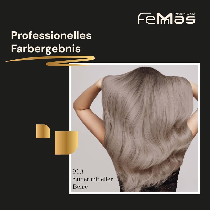 Femmas Hair Colour Set Super Brightener Beige 913 I Hair Colour Cream 100 ml + Oxycream 100 ml 1.9% I Permanent Hair Colouration + Developer I Gentle & Long Lasting I Salon Hair Colour for Home