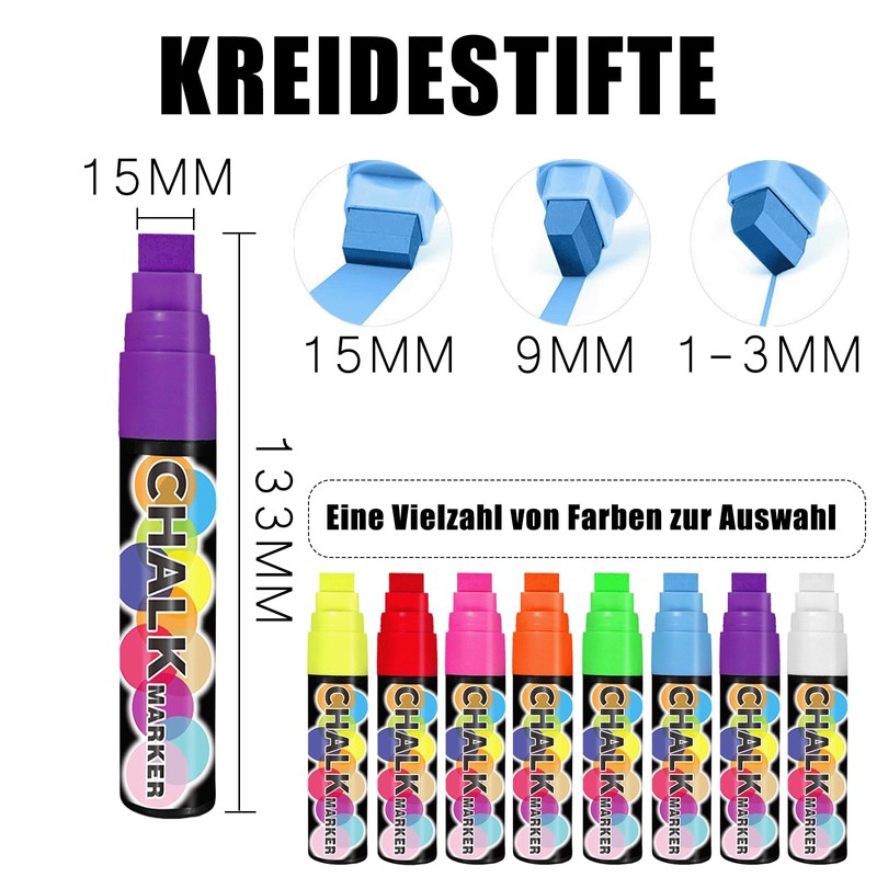 - Large capacity chalk pens for blackboard, washable: you will receive a chalk pen washable purple. The size is 145 x 28 mm. Assorted writing widths: 15mm, 9mm, 1-3mm.
