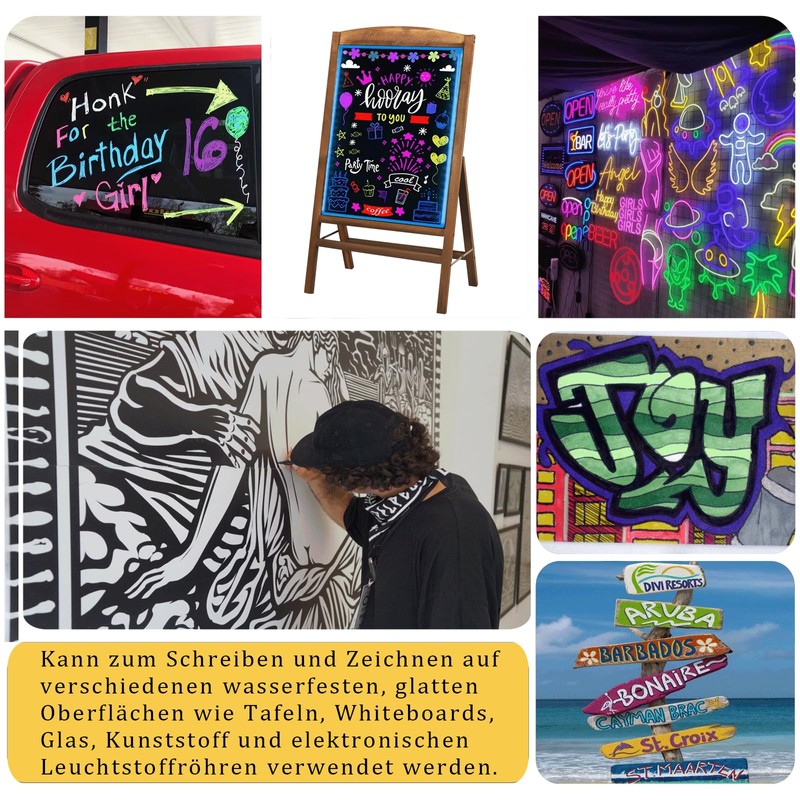 - Applications: This chalk pen is perfect for windows, blackboards, glass and cars. It can also be used for graffiti, DIY, teaching, drawing, LED advertising and body design. Non-permanent foil pen is the ideal choice for DIY, teaching and marking.