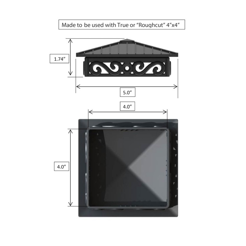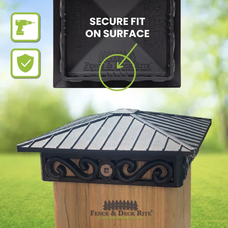 Fence & Deck Rite offers uniquely designed post caps made of reinforced black polypropylene, fitting 4 x 4 posts (actual 3.5 X 3.5 inch). (4" X 4" - PACK OF 4)