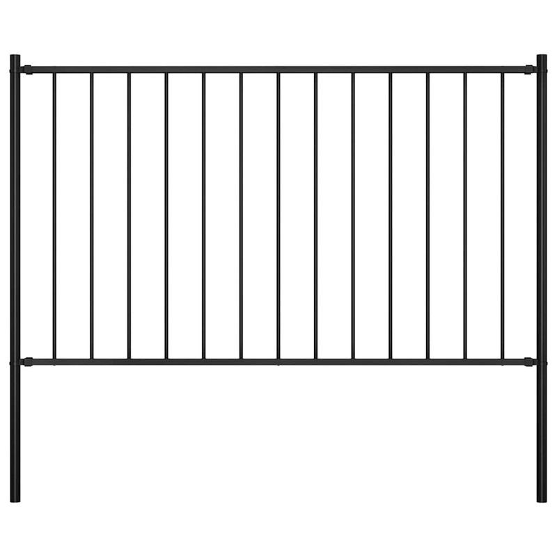 Fence Panel with Posts Powder-Coated Steel 5.6'x3.3' Black Steel Anti-Rust Fe...