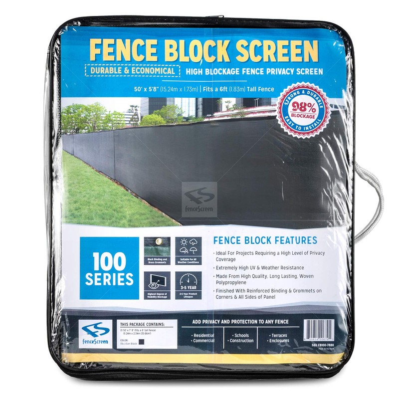 FenceScreen Fence Privacy Screen - Extreme 98% Blockage Temporary Windscreen Fence Cover (6ft x 50ft, Black)