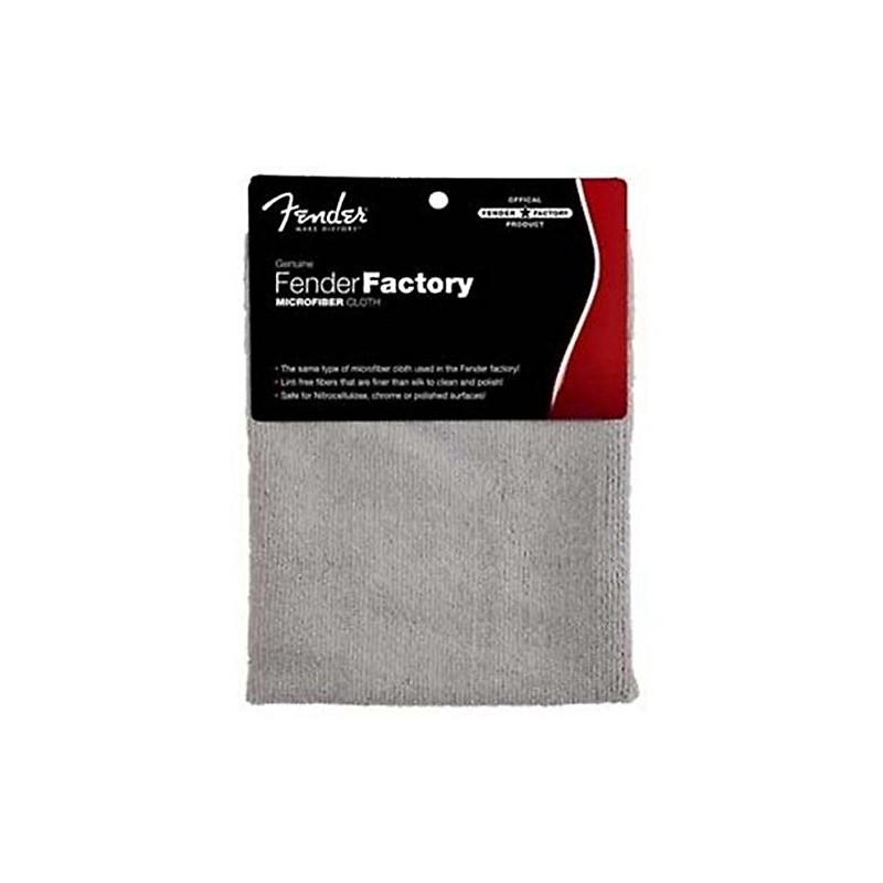 Fender Factory Microfiber Polishing Cloth Keep your guitar clean and fingerprint free with the Fender Factory Microfiber Polishing Cloth. This cloth is built up of microfibres that attract and hold oil, grease, dirt, grime, dust, and other contaminants keeping your guitar in pristine condition and will not harm delicate nitrocellulose finishes, chrome, or polished surfaces. A must have for all guitar players that like a clean guitar. :Same type of microfiber cloth used in the Fender factory :Lint free fibers that are finer than silk to clean and polish :Safe for nitrocellulose, chrome, or polished surfaces.