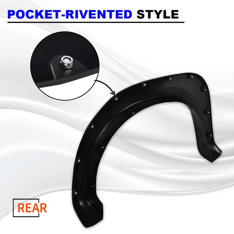 Fender Flares Compatible with Nissan Titan 2004-2015 Textured Black Pocket Rivet Bolt Style Wheel Protector