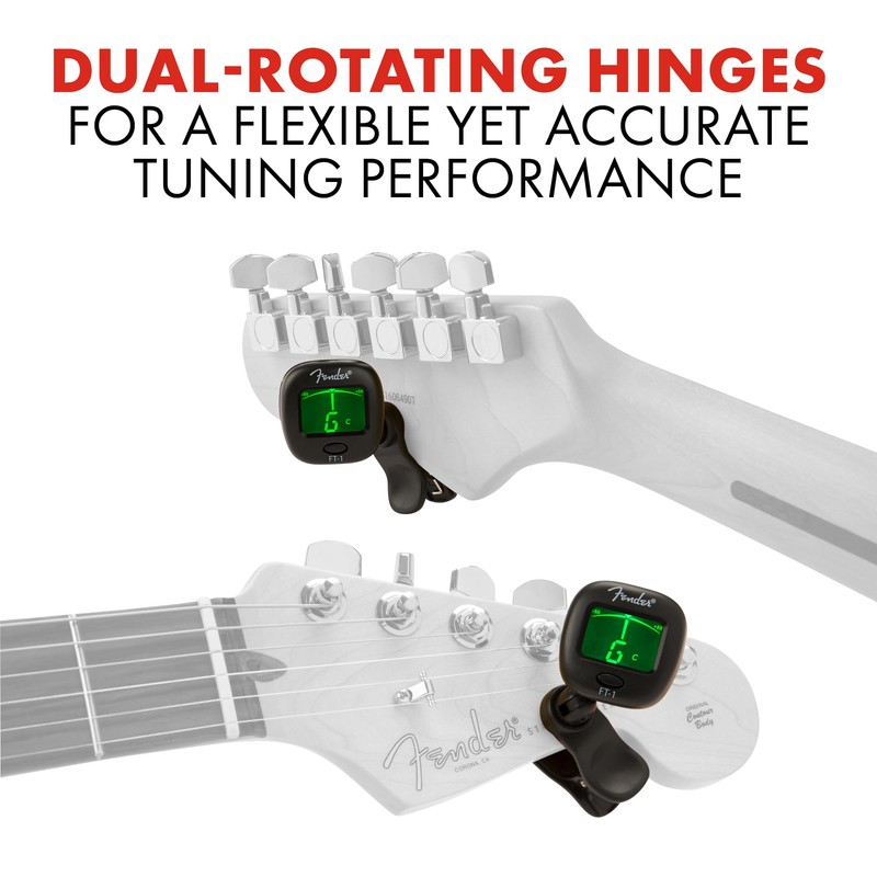 Fender FT-1 Professional Guitar Tuner Clip On, with 1-Year Warranty, Full-Range Chromatic Guitar Tuner with Dual-Rotating Hinges, A4 Calibration