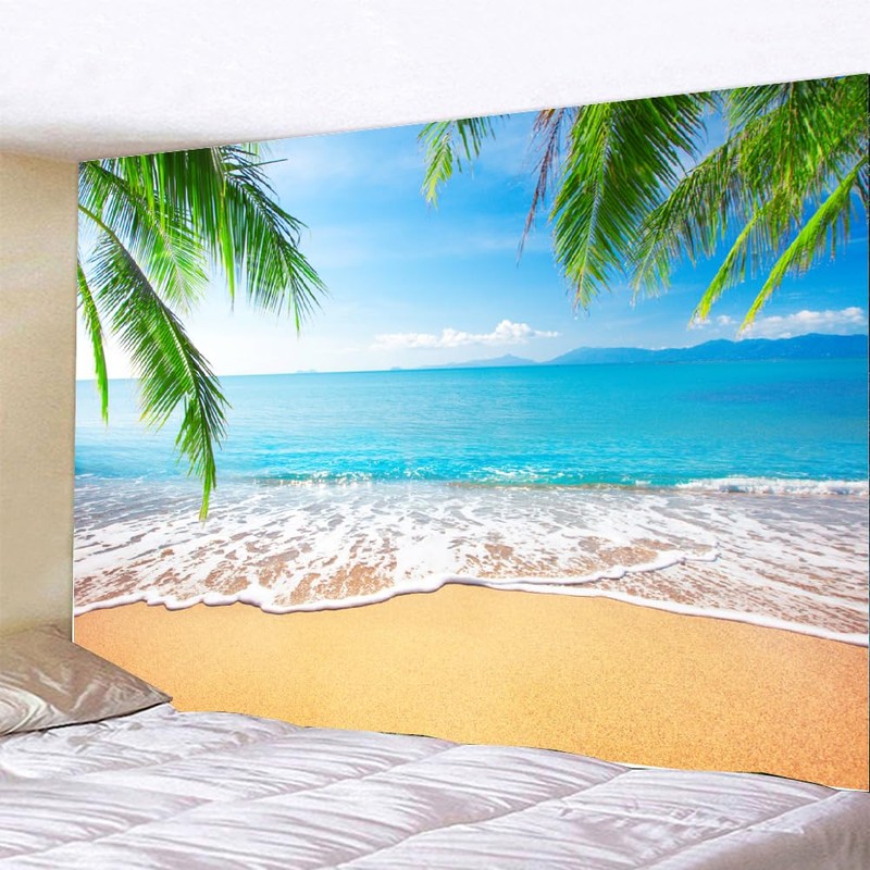 FENDROM Summer Beach Theme Tapestry Wall Hanging Palm Trees Ocean Sea Beach Wave Scenery Wall Art Tropical Nature Tapestry Holiday Home Decor for Bedroom Living Room