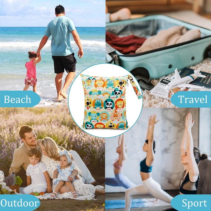 • Large capacity -- This wet bag with double zips is used to organise wet and dry items such as nappies, swimsuits, beach towels and sportswear in one bag without leaks.