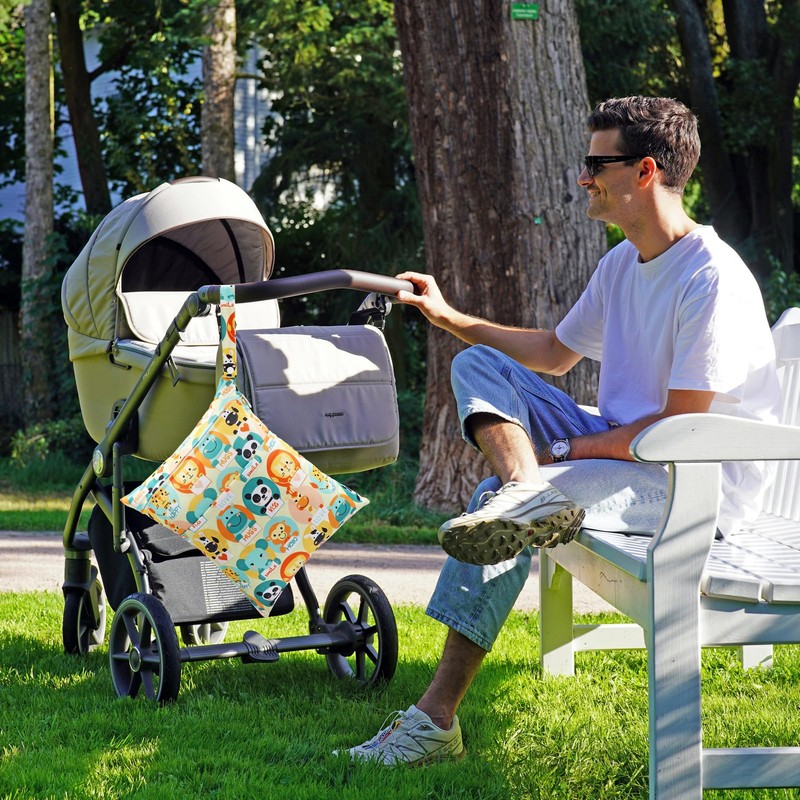 - Easy to carry: the press stud on the handle of the cloth nappy bag makes it easy to carry or hang the wet bag on the pram or clothes rail. Can be folded even when not in use and does not take up much space.