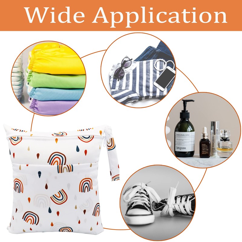 • 3 different sizes: the package contains 3 wet bags in 3 sizes for your different needs: 36 x 30 cm, 28 x 30 cm and 25 x 20 cm. The large wet bag with double zips is used to organise wet and dry items separately such as nappies, swimsuits and beach towels in one bag without leaking. The middle one is intended for your toiletries, underwear, socks, etc. The small one is for cosmetics, combs and other small items.