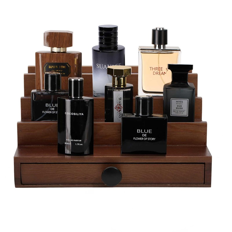 - Large Capacity: The 4 Tier walnut perfume display tray measures 11.1inch long, 10.2inch in width, and 4.72inch in height. Large capacity design to keep your daily accessories easily accessible and neatly organized, perfect for organizing colognes, perfumes, jewelry, watches, and more.