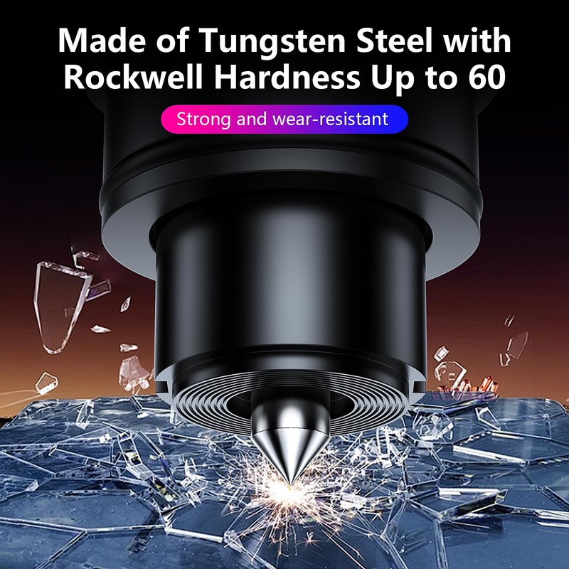 • Tungsten Steel Heads:This safety hammer uses a brand new material: tungsten steel, tungsten steel has a Rockwell hardness of 60 super hardness, which is several times the hardness of glass. Used for steel head can easily break the glass, very strong and durable.