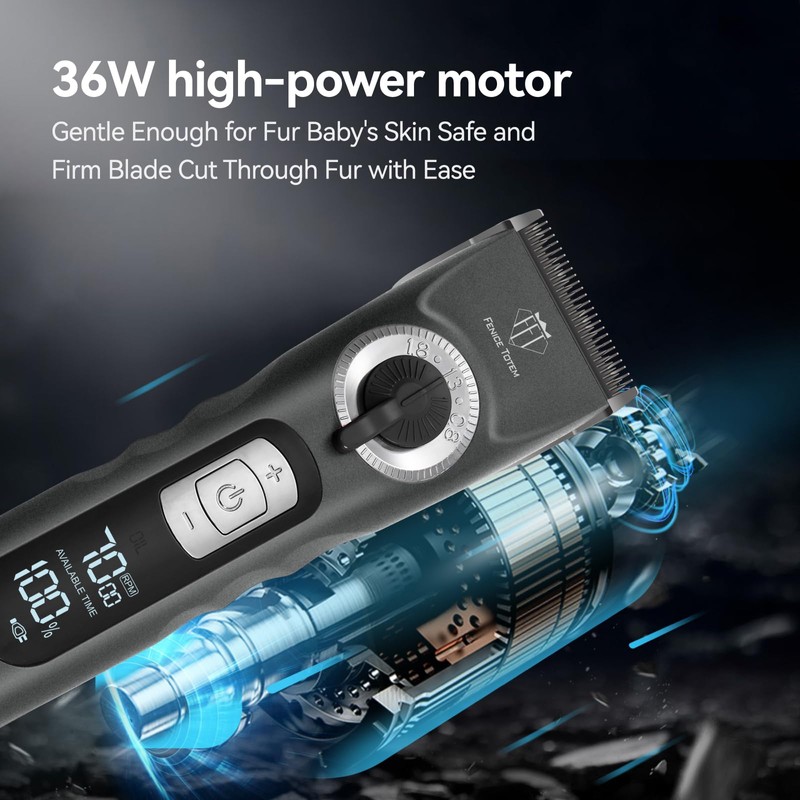 FENICE TOTEM Professional Electric Dog Grooming Clippers, 4000mAh Battery, LCD Display, Type-C Charging, Silver (Gray)