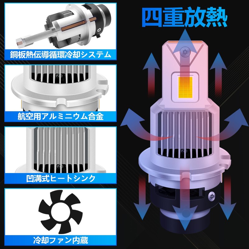 Fenikso D2S LED Headlight, Explosive Light, White, 6500K D2R LED Pon, Double Sided Luminous, Fan Included, No Wiring, No Processing Required, Genuine Replacement, Built-in Canceller, DC12V, 2 Pack