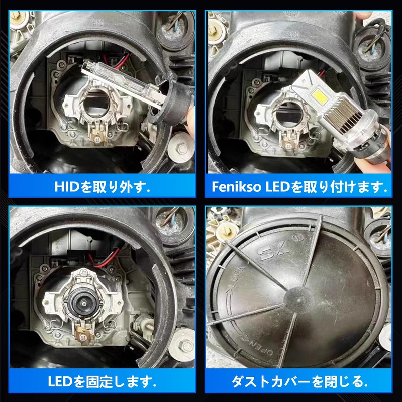 - High Brightness: The Fenikso D2S/D2R LED is equipped with 30 high quality 9054 LED chips, which are resistant to aging over time, and 3 times brighter than genuine HID. Even after continuous lighting for a long time, the amount of light will not fall off