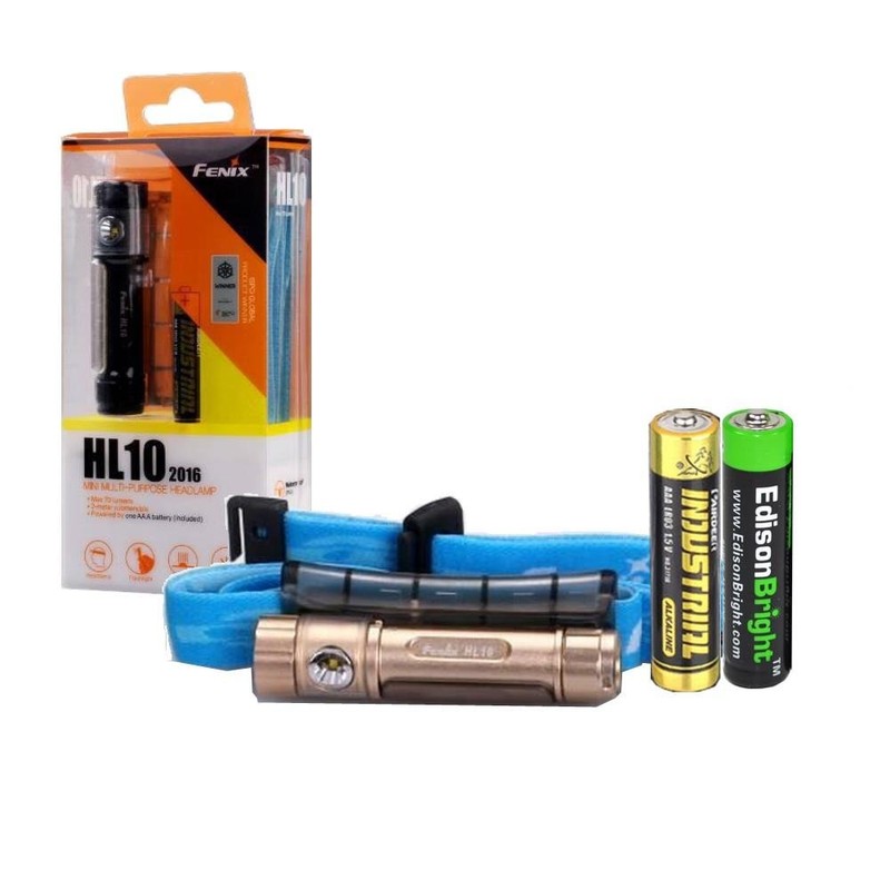 Fenix HL10 70 Lumen LED removable light Headlamp with Three EdisonBright AAA Alkaline batteries … (Gold)