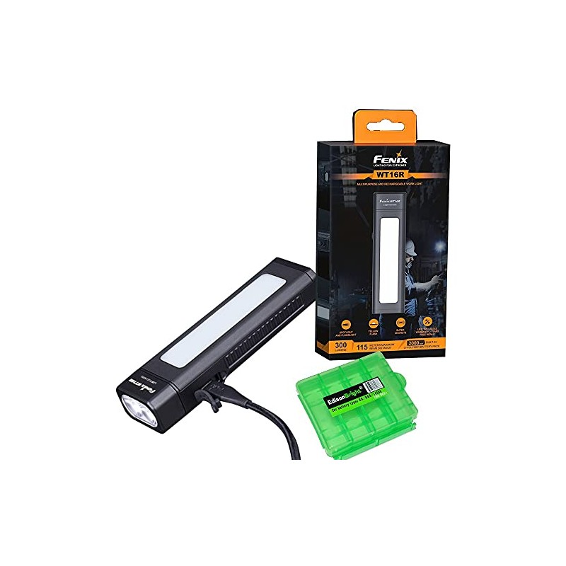 Fenix WT16R 300 Lumen rechargeable magnetic base Handheld flashlight/worklight with battery and EdisonBright charging cable carrying case