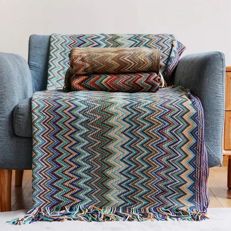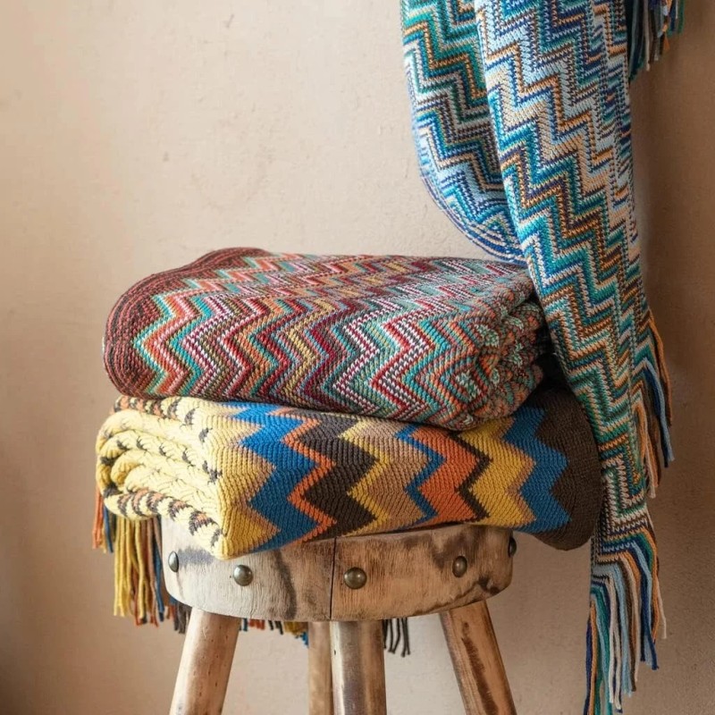 Add a touch of bohemian charm to your home with this stylish zigzag throw blanket. Featuring a bold, textured pattern in your choice of four rich colors, it’s perfect for cozying up on the couch or adding a pop of personality to your décor.