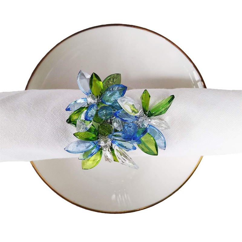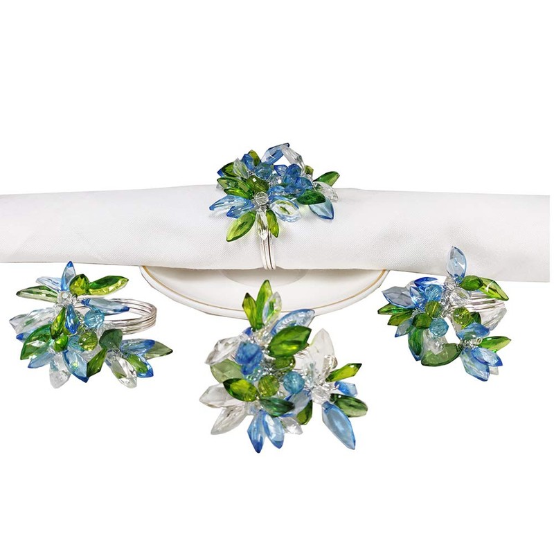 - MULTI-FLOWER NAPKIN RINGS - It is so easy to dress up or pare down this set of crystal Design Napkin Rings depending on the occasion. They're great to use for family gatherings, casual occasions or even when entertaining guests for a brunch or barbecue. They go lovely with linen table napkins.