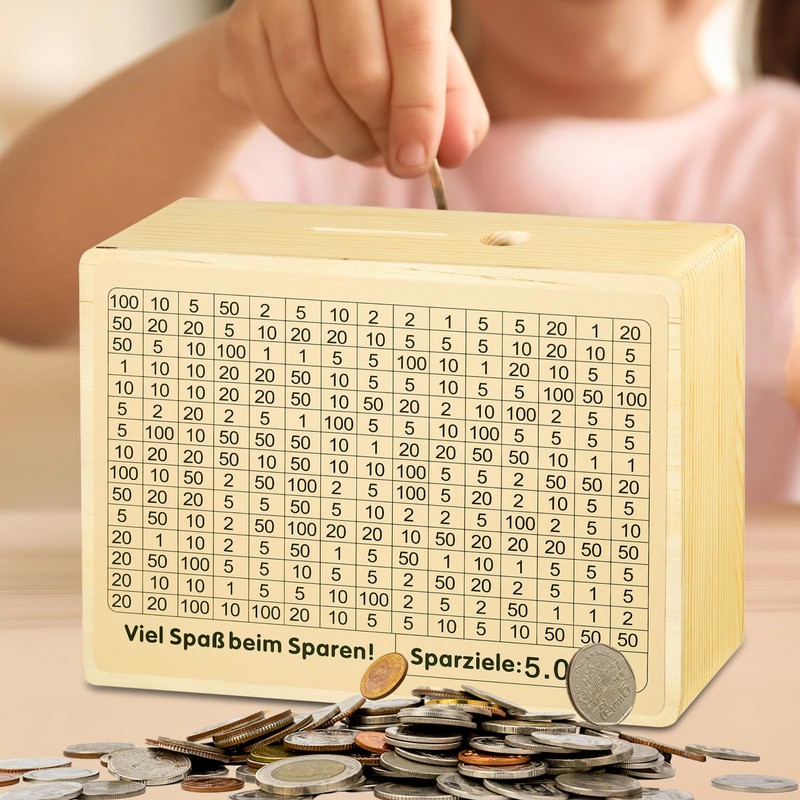 1. This charming and eco-friendly savings box is designed to inspire both children and adults to cultivate good saving habits. Made from high-quality, sustainable wood, each bank boasts a unique grain and finish.