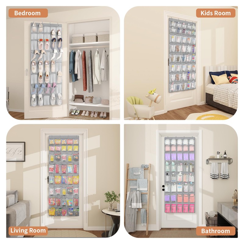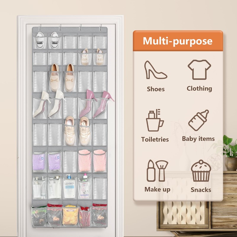 - Sleek, Functional & Built to Last: Our shoe organizer door hanger boasts a clean, modern design that fits effortlessly into any home. Keep shoes or other items stay neatly behind the door, maintaining a clutter-free look. Choose from versatile gray or practical black for everyday use. Made with heavy-duty non-woven fabric, back of door shoe organizer is extra durable and designed to handle heavy loads with ease!