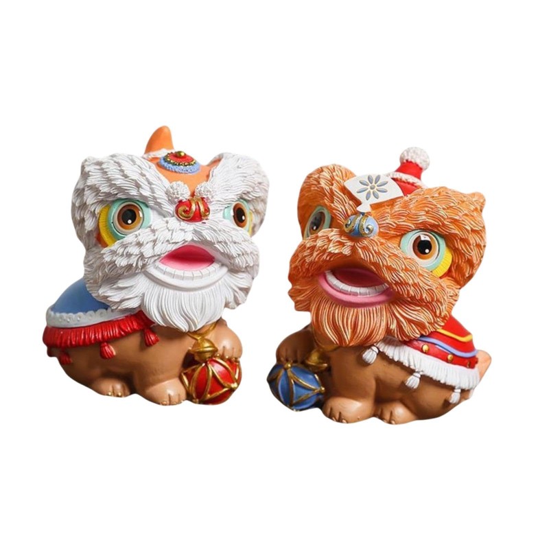 Fenteer 2 Pieces Chinese Lion Dance Statues Year of Snake Decorations Traditional Tabletop Ornaments Resin Figurines for Living Room