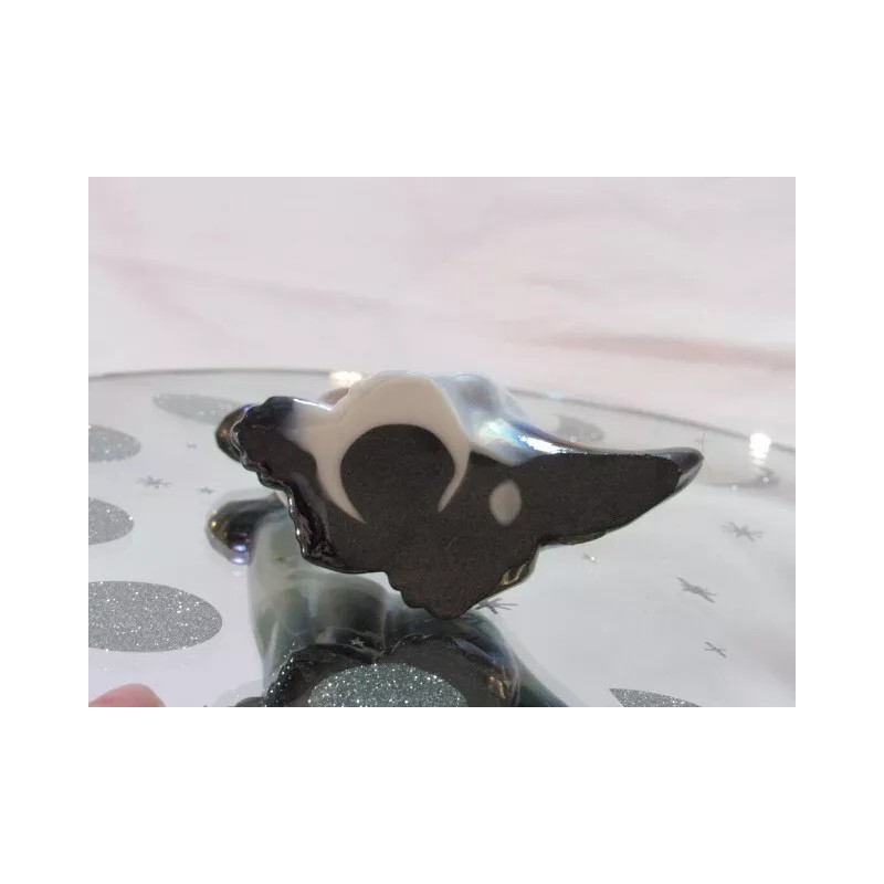 FENTON GLASS 2021 MILK GLASS & AMETHYST IRIDIZED FIGURINE DINOSAUR FIGURINE