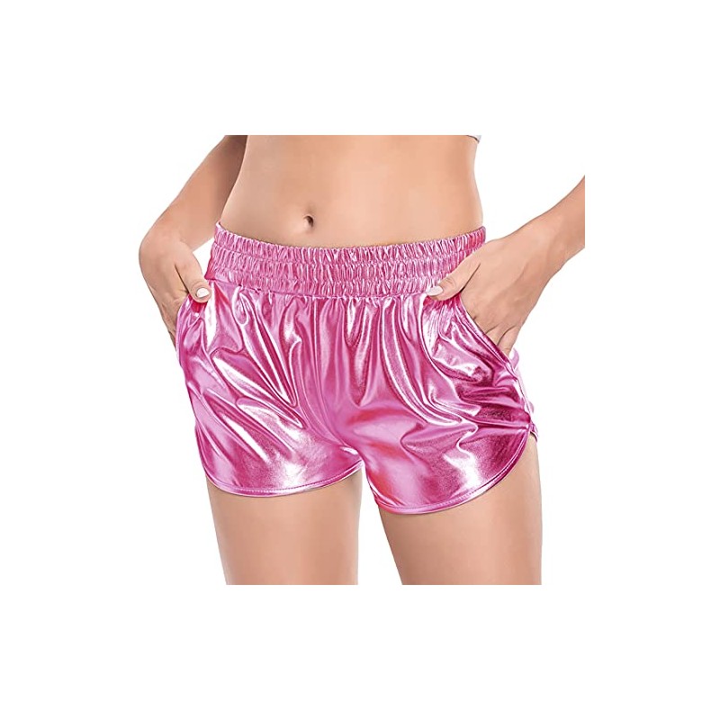 Fenyong Women's Metallic Shorts Shiny Pants with Elastic Waist Hot Rave Dance