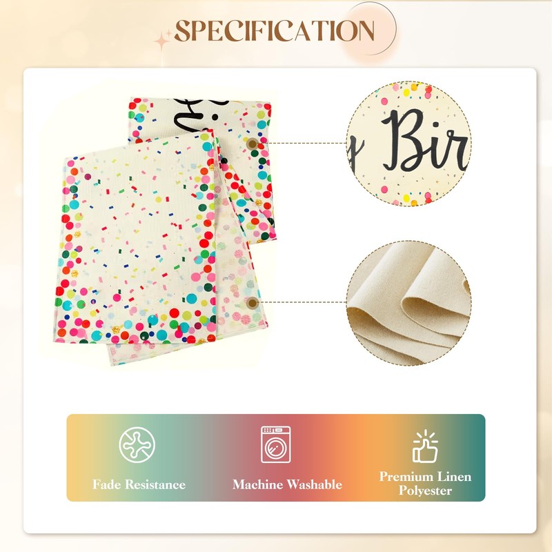 - Quality Materials: This happy birthday table runner is mainly made of polyester, durable and not easy to fade, protecting your table's surface from hot pans, scratches, and spills.