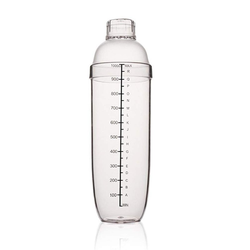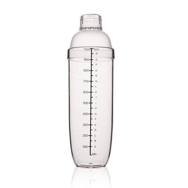 FEOOWV Plastic Cocktail Shaker,Drink Mixer Hand Shaker Cup with Scales,Transparent (33 oz / 1000cc)