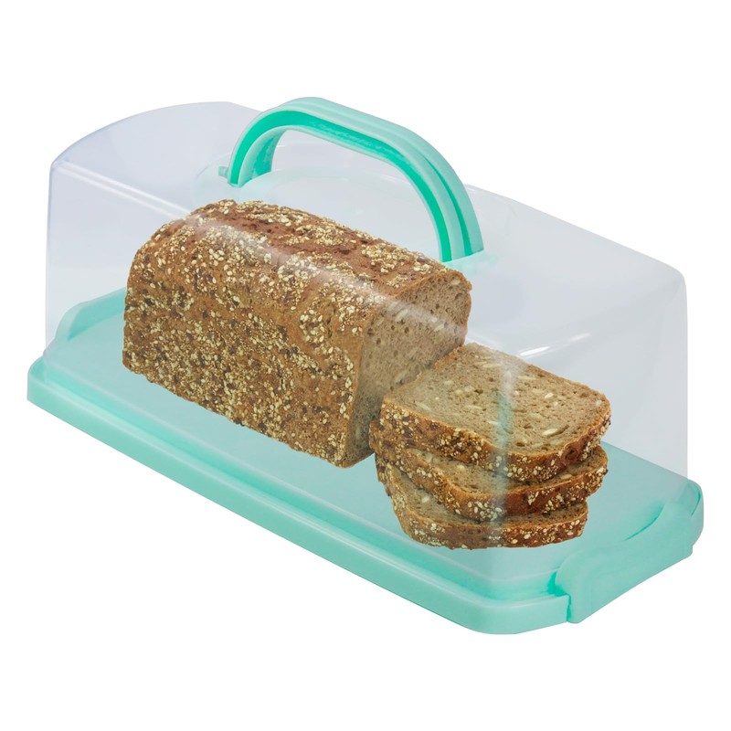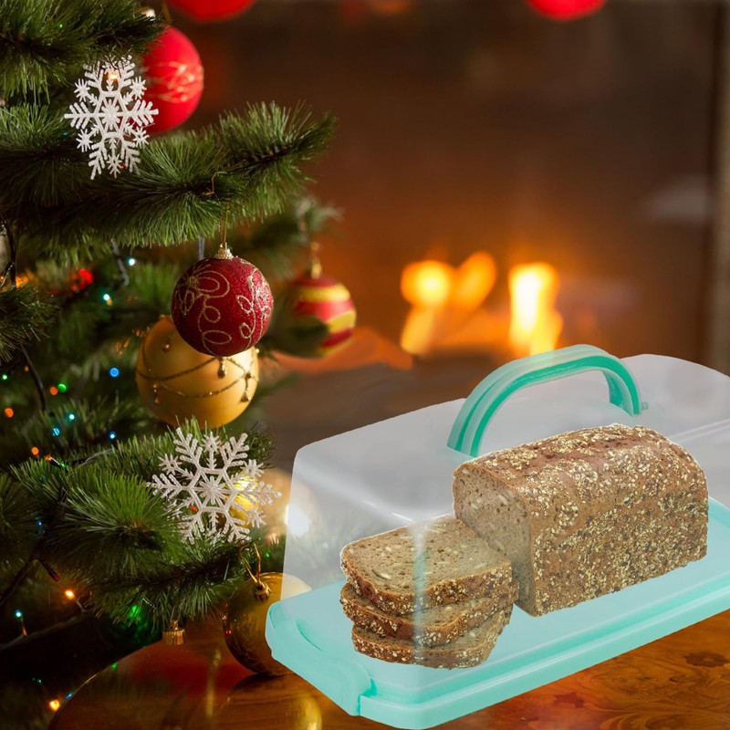FEOOWV Portable Plastic Rectangular Loaf Bread Box with Transparent Lid, Bread Keeper for Carrying and Storing Loaf Cakes,Banana Bread,Pumpkin Bread,Quick Breads (Mint green)