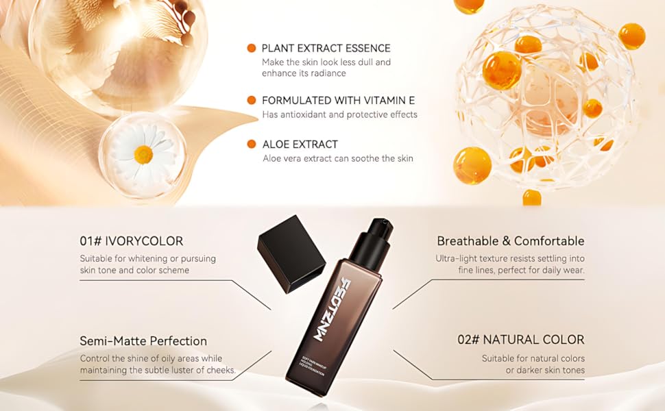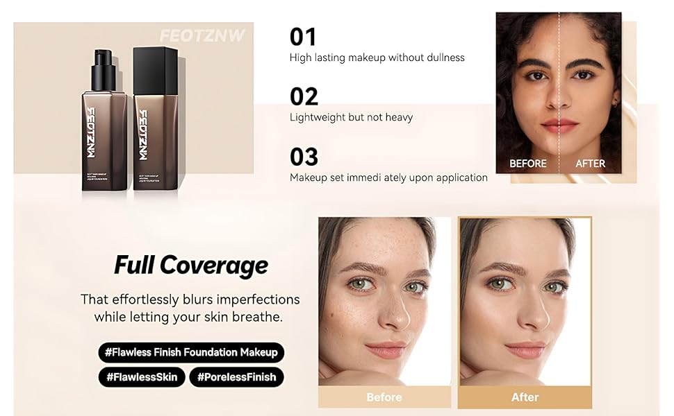 Feotznw Flawless Finish Foundation - Medium Coverage, Lightweight, Semi-Matte...