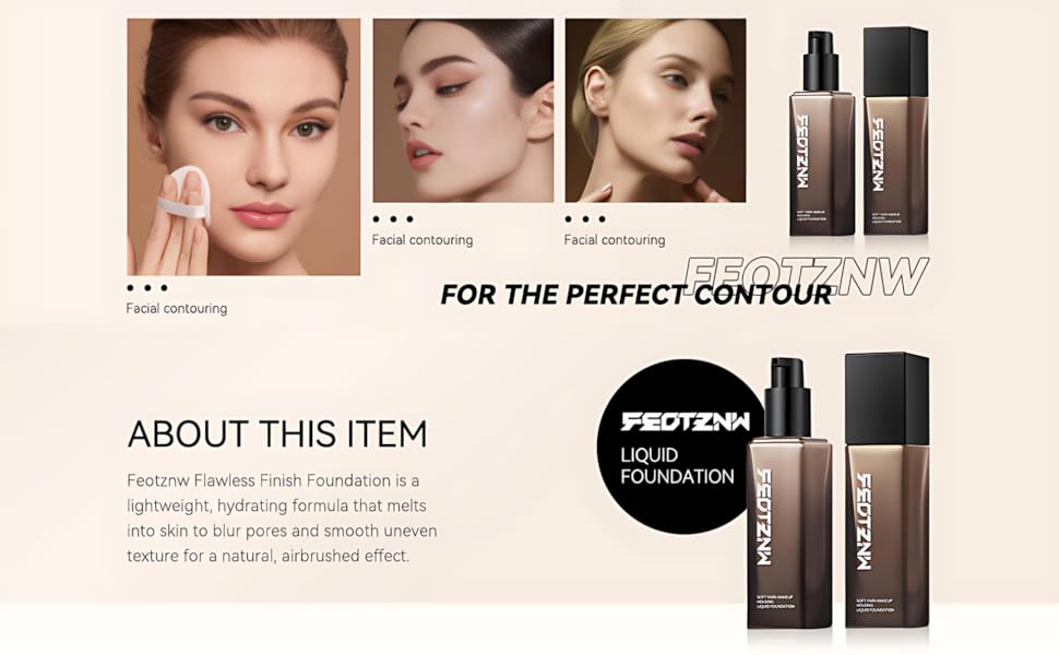 • Feotznw Flawless Finish Foundation is a lightweight, hydrating formula that melts into skin to blur pores and smooth uneven texture for a natural, airbrushed effect. The Ivory White/Beige shade complements light complexions with neutral-cool undertones, effortlessly neutralizing redness while enhancing your skin's radiant glow.