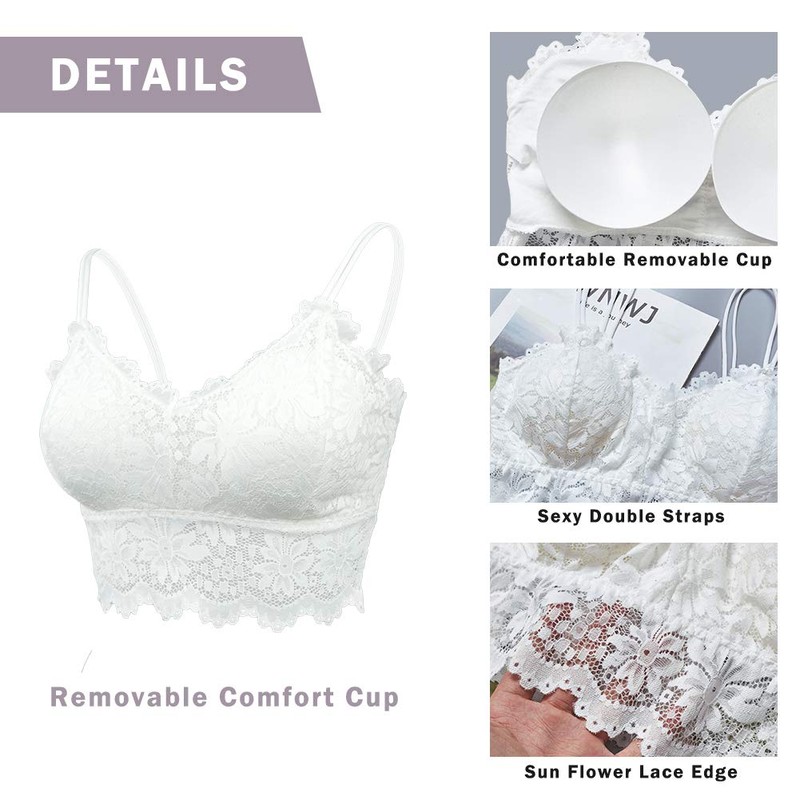 - Soft Material: The lace bralette for women sexy are made of elegant lace material, cotton-lined cups with removable padding provide smooth support in this bralette that features a floral lace overlay and scalloped under-bust band,lightweight, soft and comfortable to wear.