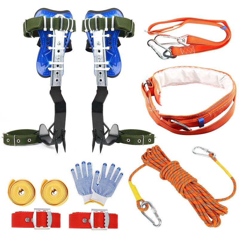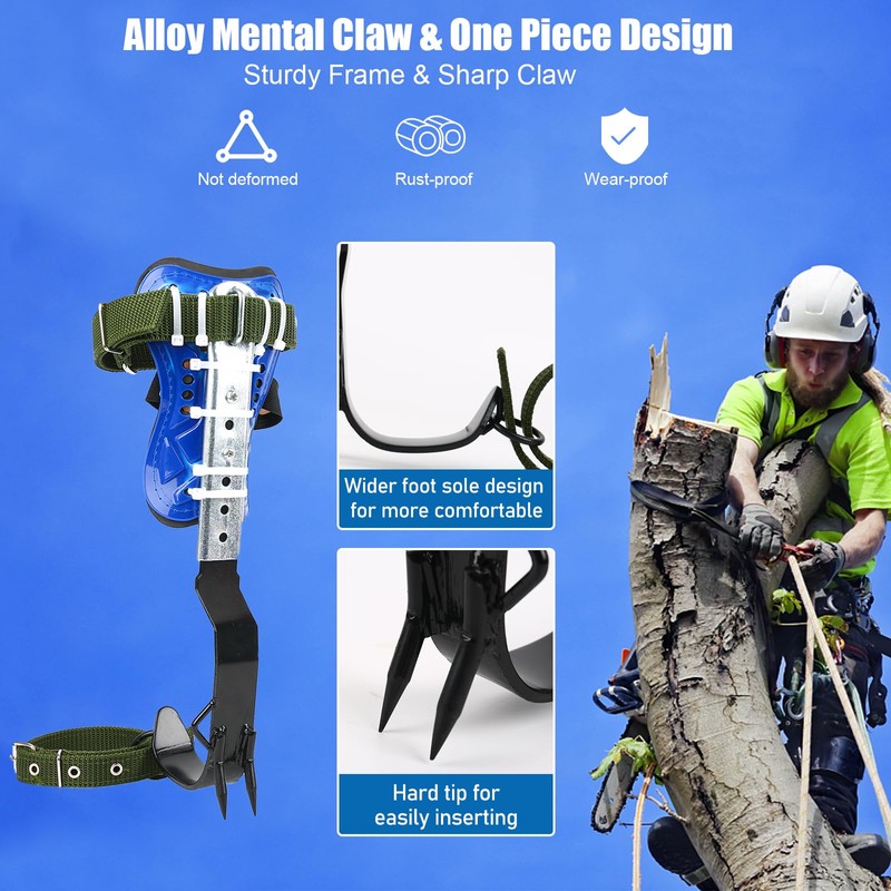 - SAFE AND DURABLE: Features sharp, wear-resistant stainless steel claws and non-slip treads for safe tree climbing. Adjustable safety sleeves and contoured stirrups fit snugly around the legs, while high-strength nylon belt straps provide maximum comfort while maintaining a secure fit