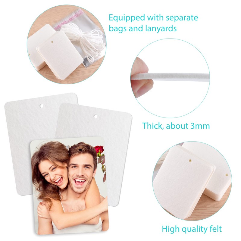 - Package Including:20 pieces sublimation air freshener blank sheets, a roll of rope and 20 small bags for separate packaging.