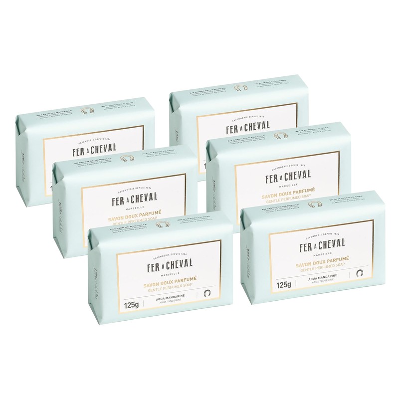 Fer à Cheval Marseille Soap Gentle Perfumed Soap Bar Set of 6, Aqua Tangerine Scent, 125 g/4.41 oz, Hypoallergenic, Made in France