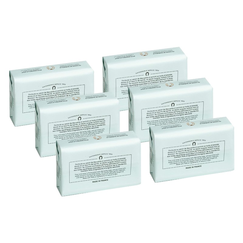 Fer à Cheval Marseille Soap Gentle Perfumed Soap Bar Set of 6, Aqua Tangerine Scent, 125 g/4.41 oz, Hypoallergenic, Made in France