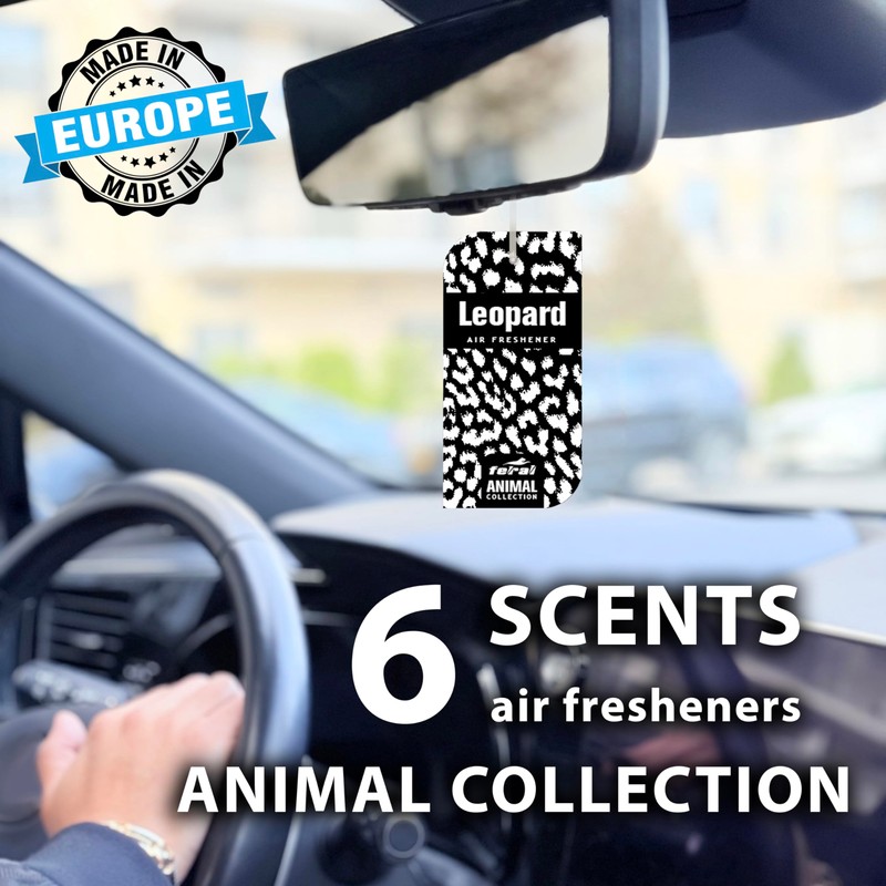 FERAL Car Air Fresheners | 4 PCS | Made in Europe - Long Lasting | Unique Luxury Scent | Hanging Tree (ANIMAL COLLECTION) (Leopard)