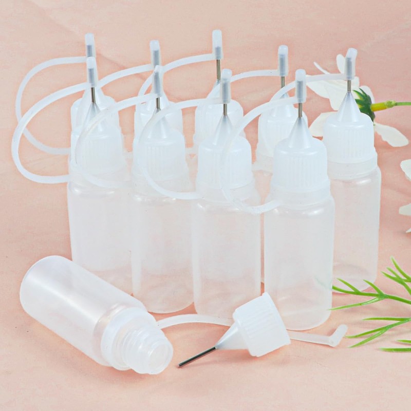 FERCAISH Needle Bottle, 10 ml Needle Tip Glue Bottle Applicator, Glue Bottle Applicator Pen, Precision Tip Applicator Bottle for DIY (Pack of 10, White)