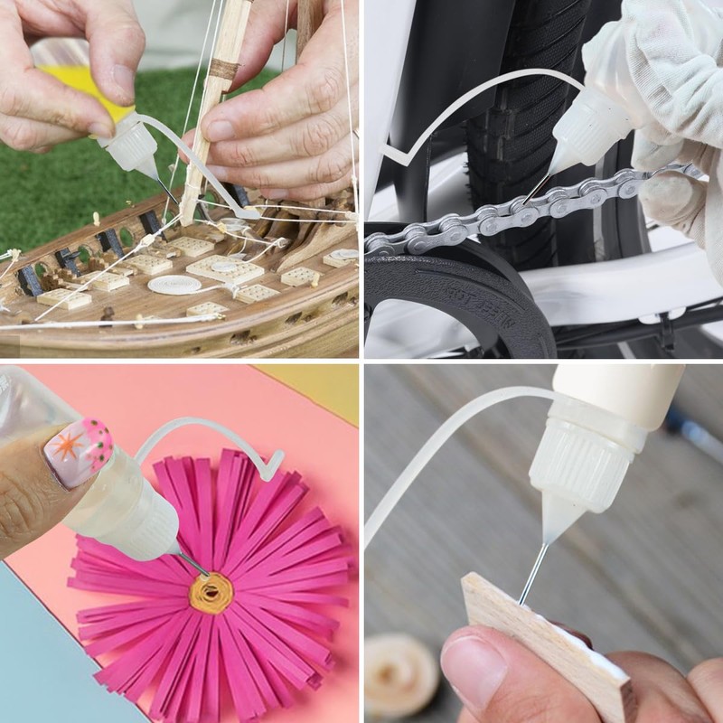 - CAPACITY The fine tip adhesive bottle holds 10ml of liquid, has a height of 8cm and diameter 2.05cm.