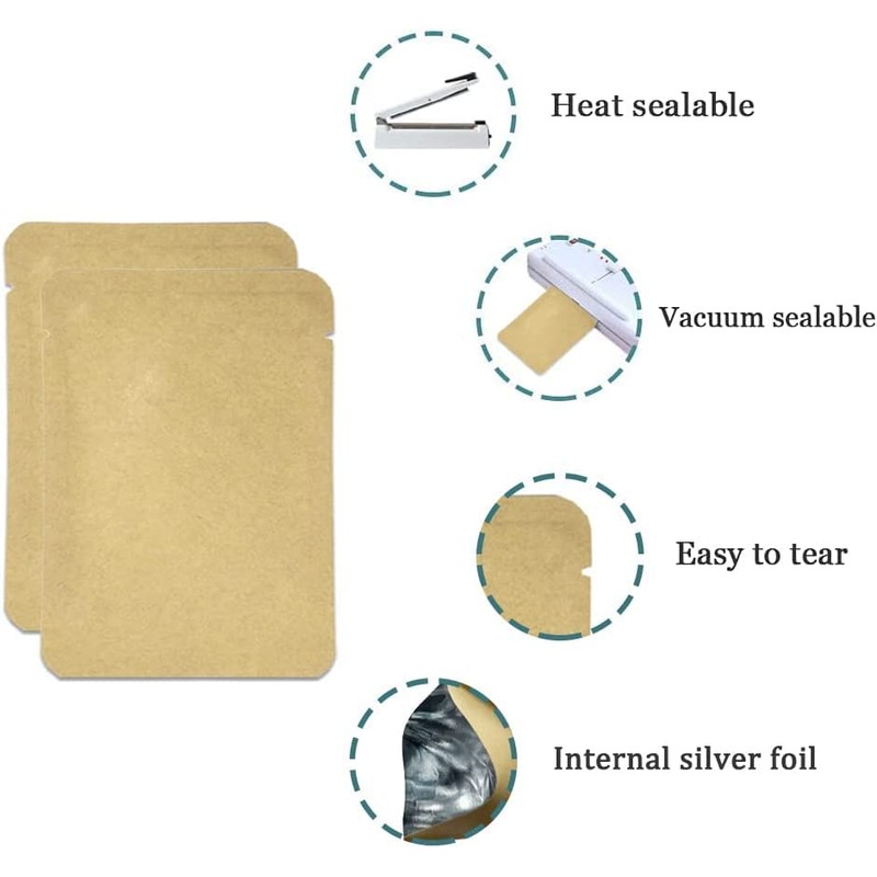 FERENLI 100 Pieces 4.3x6.3 inch (Usable Size 3.7x5.7 inch) Kraft Paper Open Top Vacuum Sealable Bags Mylar Foil Heat Seal Pouches for Sample Food Storage Packaging with Tear Notches