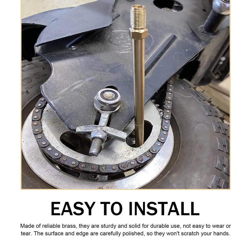 • 2-Pack 50mm Valve Stem Extenders: Included in the package: 2 brass valve stem extenders with 1.97inch (50mm) length and 0.28inch (7mm) inner thread diameter. Perfect for extending standard American tire valves to simplify inflation.