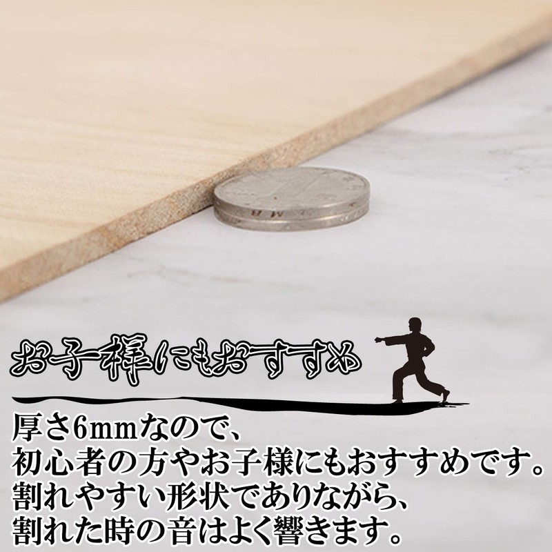 Recommended for junior karate: Recommended for beginners and children at recitals. The shape is prone to break, but the sound of the cracks is good The refreshing feeling of breakage also leads to motivation.