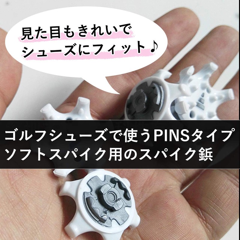 - Spikes for soft PINS spikes used in golf shoes. Soft spikes are popular because they do not damage the grass and are easy to walk in places other than grass, but the studs are made of resin and rubber so they are easy to wear and tear and consumables, so they require regular maintenance