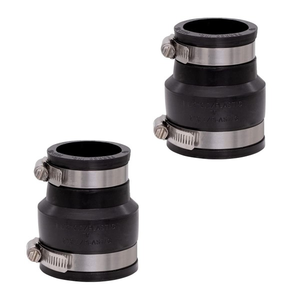 Fernco 1056-215 Flexible PVC Reducing Pipe Coupling 2-in. x 1-1/2-in. for Cast Iron and Plastic Plumbing Connections, 2-Pack