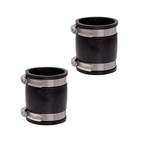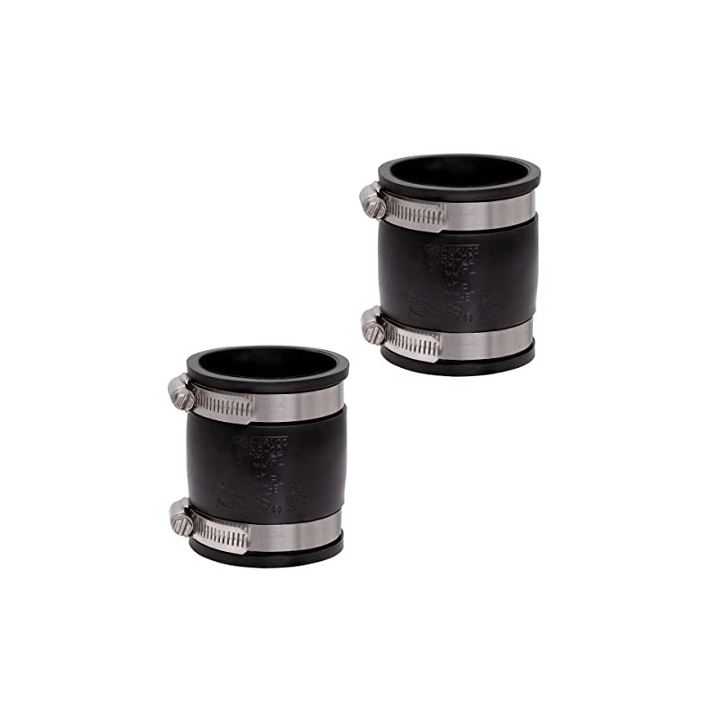 Fernco 1056-22 2-in. Flexible PVC Pipe Coupling for Cast Iron and Plastic Plumbing Connections, 2–Pack