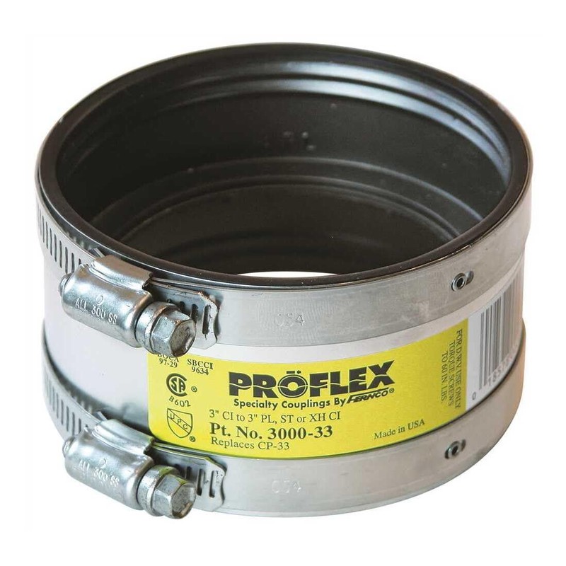 Fernco Proflex 3 x 3 in. Cast Iron x Plastic or Steel Flexible Coupling